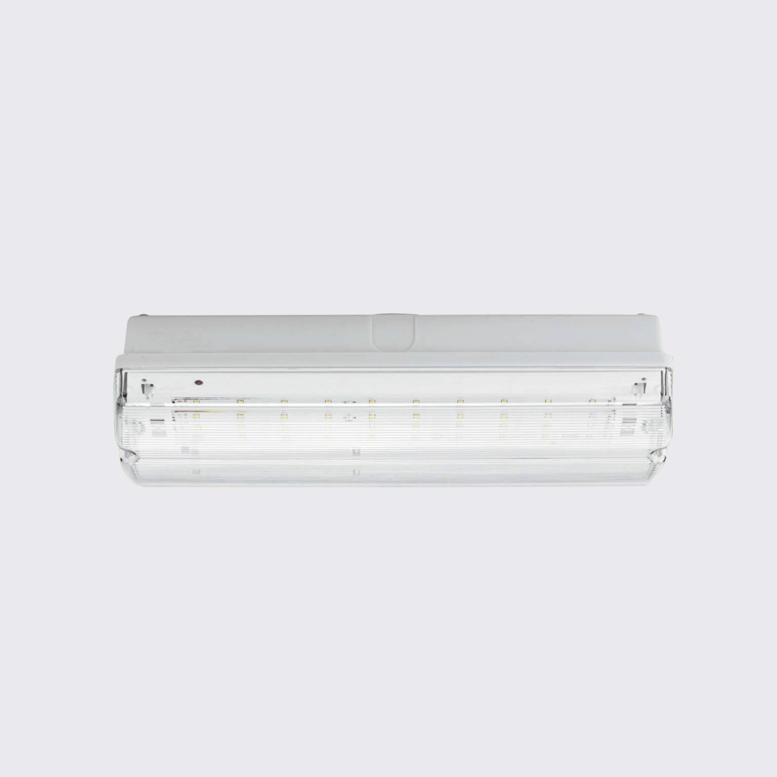 Aplique Hermético Emergencia 3W, para uso interior. Equipado con chip LED de alta eficiencia. Dimensiones: 35.1 cm (largo) x 11.7 cm (ancho) x 7.83 cm (alto).