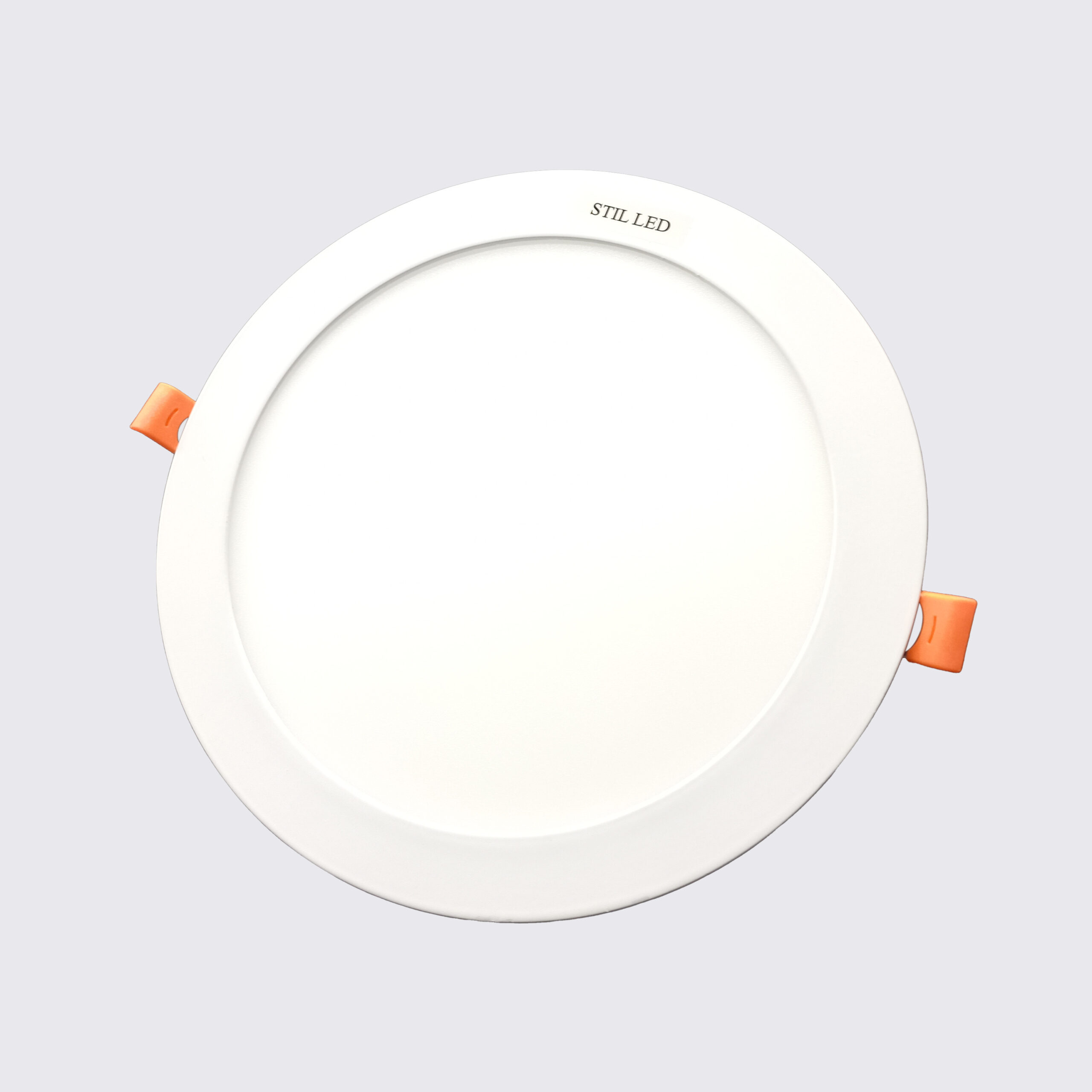 Bala Stil LED Flat 22W, para uso interior. Cuerpo en aluminio inyectado con difusor en policarbonato. Dimensiones: 24 cm (diámetro exterior) x 22.3 cm (diámetro interior) x 2.3 cm (profundidad). Peso: 1.00 kg
