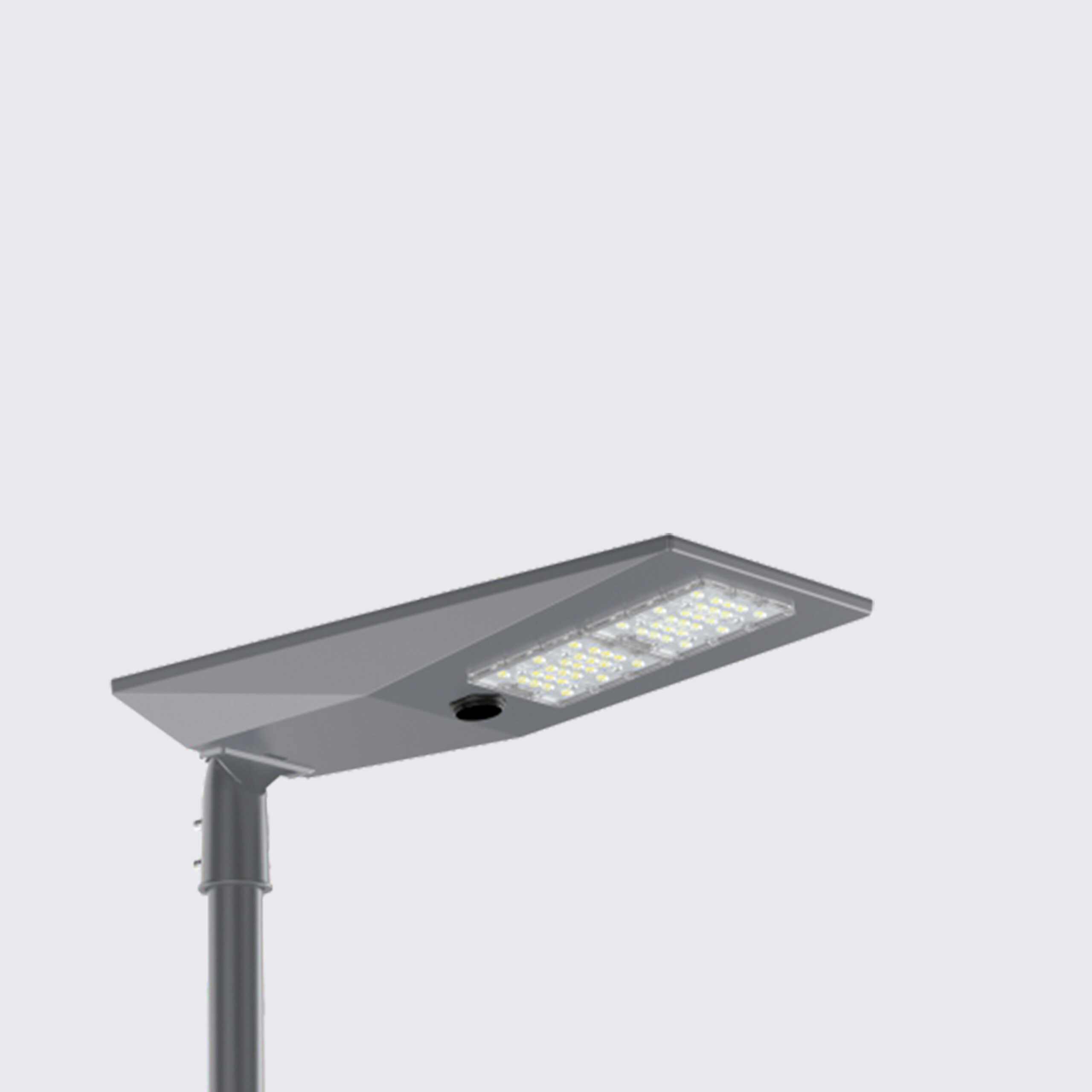 Luminaria STIL LED Street Solar TD 40W, para uso exterior. Cuerpo fabricado en aluminio fundido a presión, con protección IP65. Incorpora chip Lumileds. Dimensiones: 20.8 cm (alto) x 33.1 cm (ancho) x 80 cm (largo). Diámetro de tubo: 6 cm. Peso: 7.6 kg