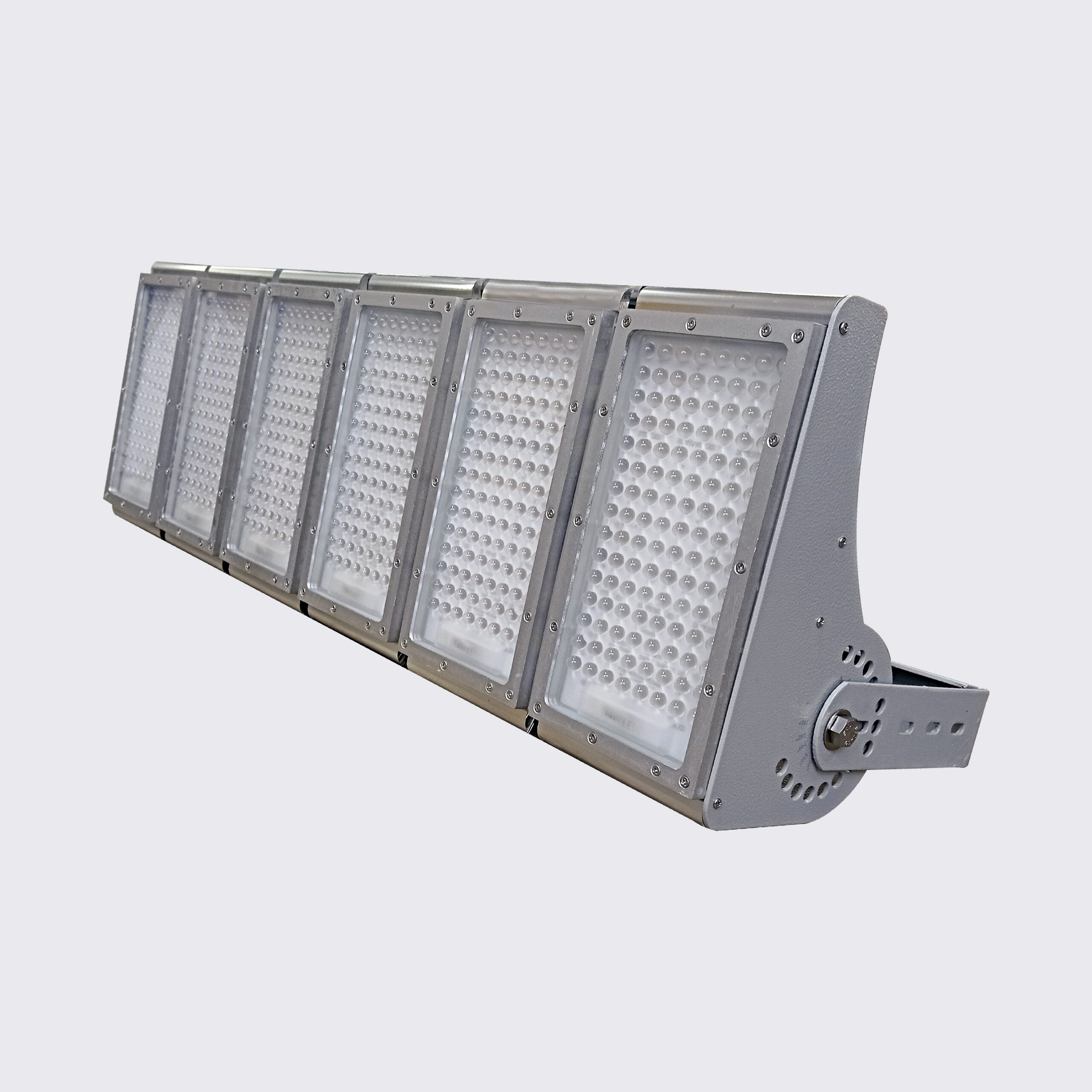 Luminaria tipo proyector High Bay IP66 480W 3-G, para uso exterior. Cuerpo en aluminio con componentes en lámina galvanizada y lámina HR. Incorpora chip Samsung 2835. Dimensiones: 26.5 cm (largo) x 83.6 cm (ancho) x 27 cm (alto). Peso: 19.30 kg